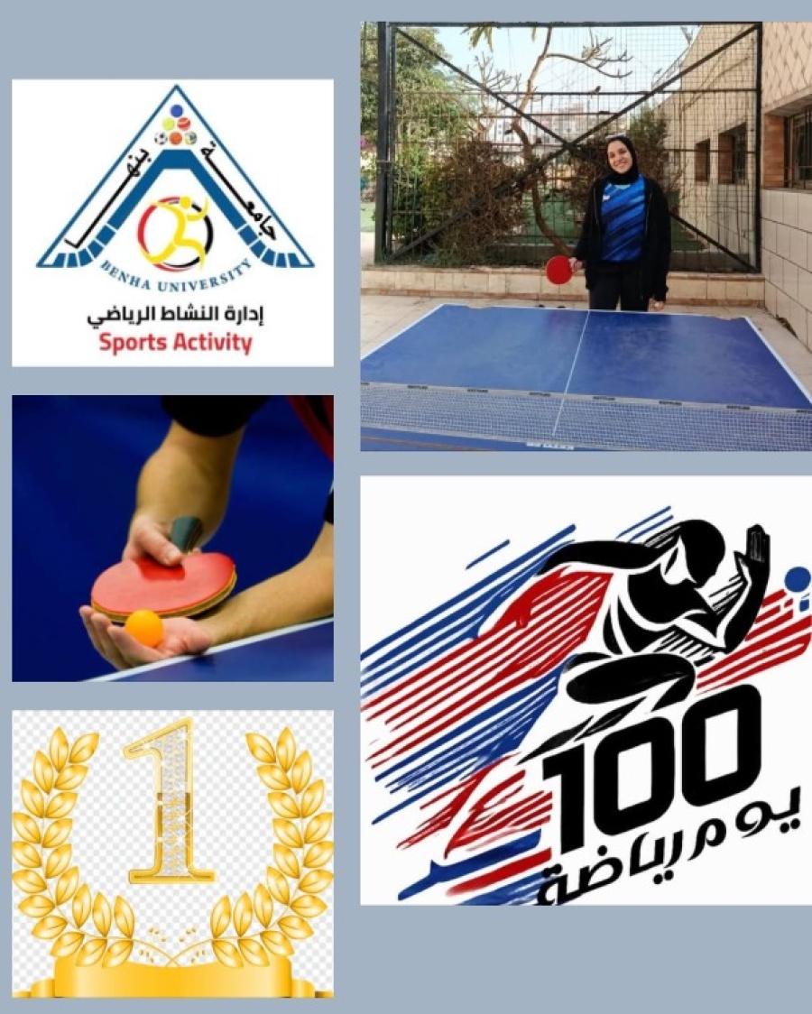 فوز الطالبه نورين محمد عبد العظيم بالفرقة الرابعه بالمركز الأول على مستوى الجامعه فى الدورة التنشيطيه لتنس الطاوله طالبات