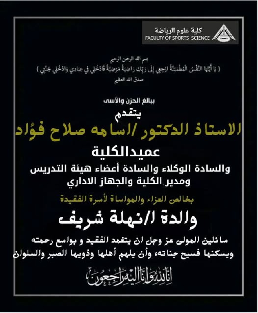 سائلين المولى عز وجل ان يتغمد الفقيد و بواسع رحمته ويسكنها فسيح جناته، وأن يلهم أهلها وذويها الصبر والسلوان انا لله وانا اليه راجعون