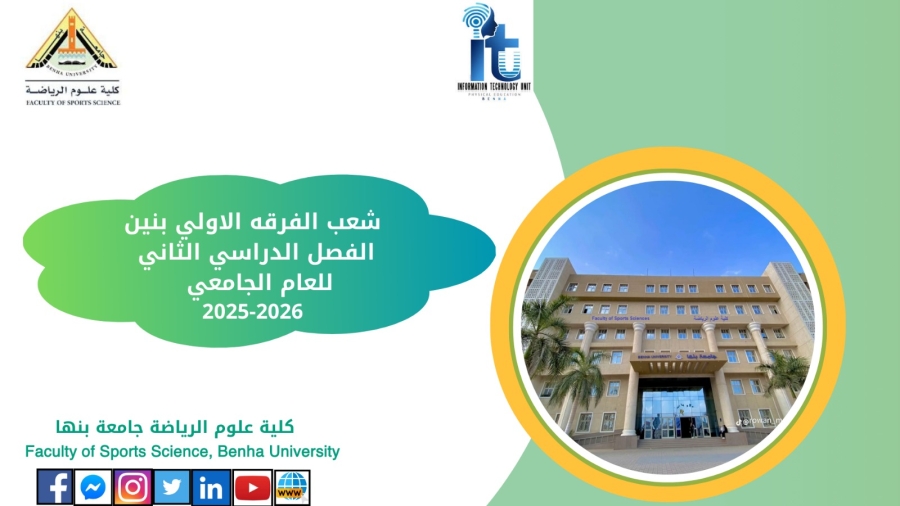 شعب الفرقة الاولى بنين الفصل الدراسى الثانى للعام الجامعى 2026/2025م قم بتحميل الملف