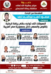 مناقشة رسالة الماجستير بعنوان المعوقات التي تواجه حكام رياضة الرماية بالقوس والسهم داخل جمهورية مصر العربية