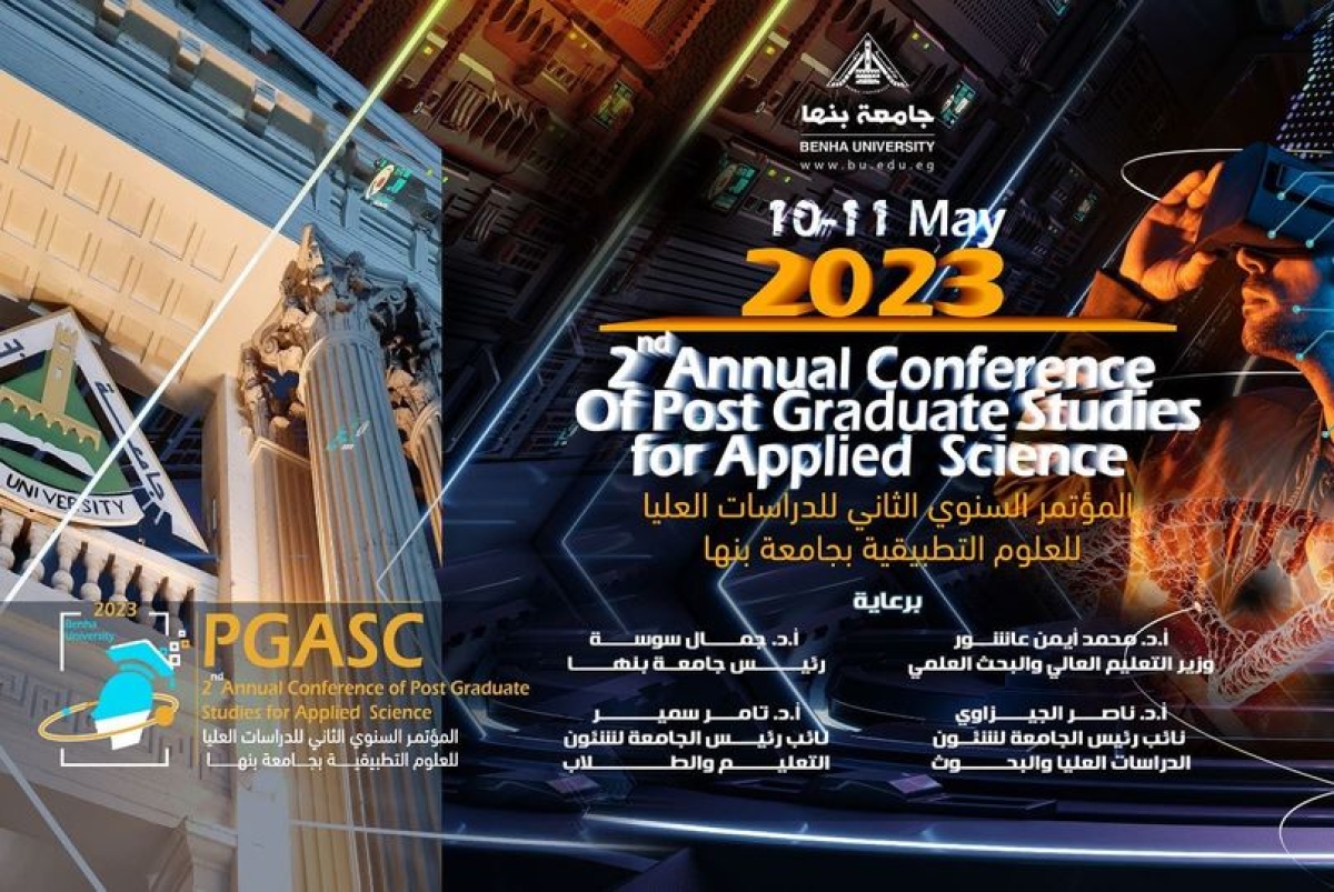 يعلن قطاع الدراسات العليا والبحوث بجامعة بنها عن فتح باب التسجيل بالمؤتمر السنوي الثاني لطلاب الدراسات العليا في مجال العلوم التطبيقية والذي يقام تحت رعاية الدكتور جمال سوسة رئيس الجامعة في الفترة من 10 الى 11 مايو 2023 بمشاركه طلاب الدراسات العليا من داخل الجامعة وخارجها وشباب الباحثين وعدد من المتحدثين المتخصصين في المجالات المختلفة للعلوم التطبيقية.