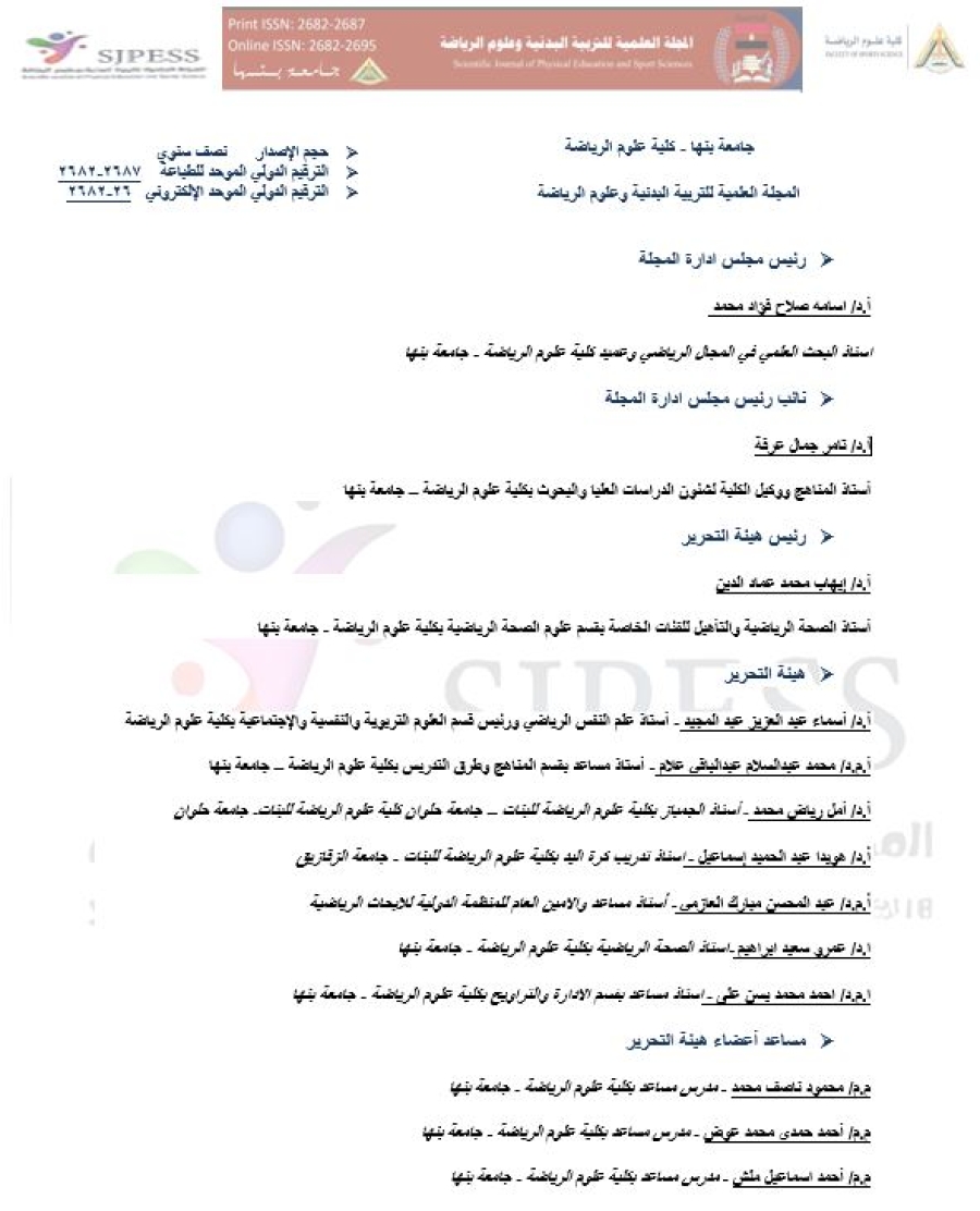 هيئة تحرير المجلة العلمية للتربية البدنية وعلوم الرياضة جامعة بنها