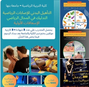 تتشرف كلية علوم الرياضة – جامعة بنها بأن تفتح باب الاشتراك فى دورات ( التأهيل البدني للاصابات الرياضية ، التدليك الرياضي ، الاسعافات الأولية )
